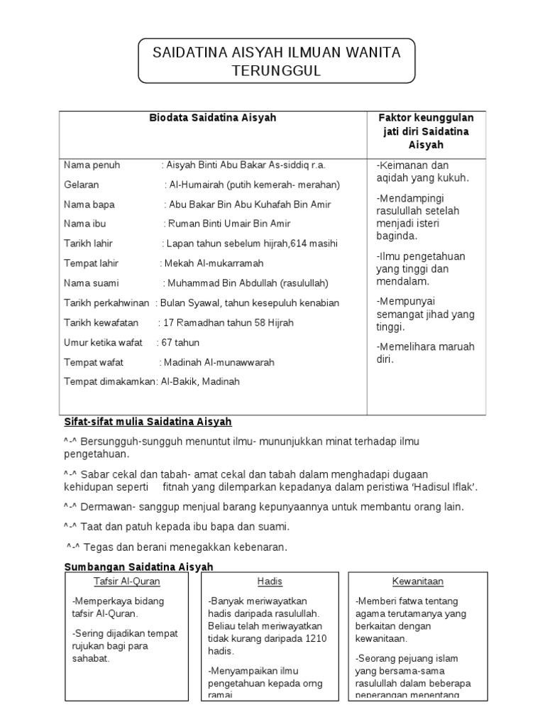 Biodata Dan Tentang Saidatina Aisyah R A Pdf Document