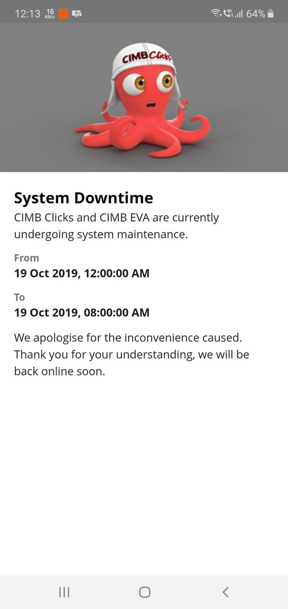 K Kugan On Twitter Cimb Has Got Unrealistic Long Maintenance Hour As Usual Maybank Is Always Up Cimb Is Down Cimbmalaysia Still Living In Cave Era Https T Co K214sq9ccv