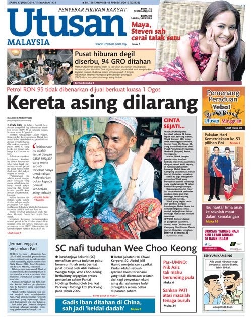 Utusan Online Muka Depan Mingguan Malaysia Hari Ini Facebook