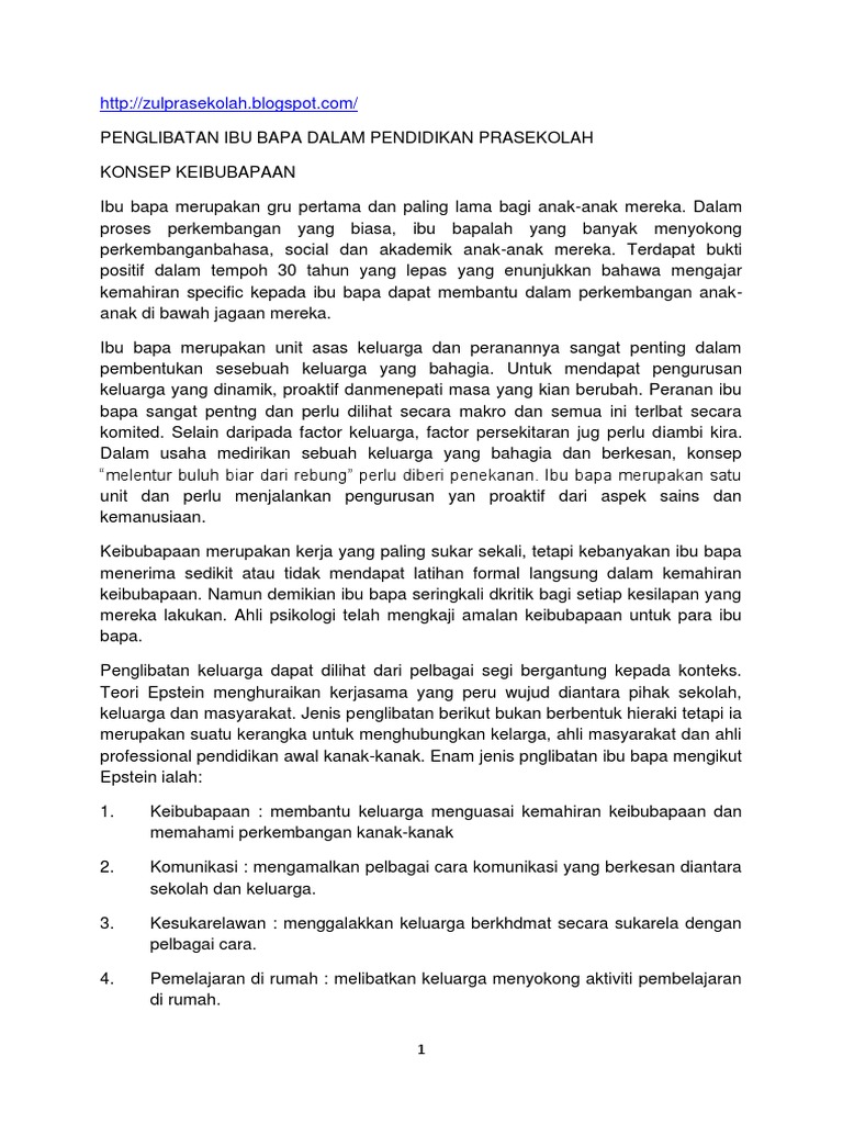 Doc Kepentingan Penglibatan Ibu Bapa Di Tadika Hanie Mirae Academia Edu