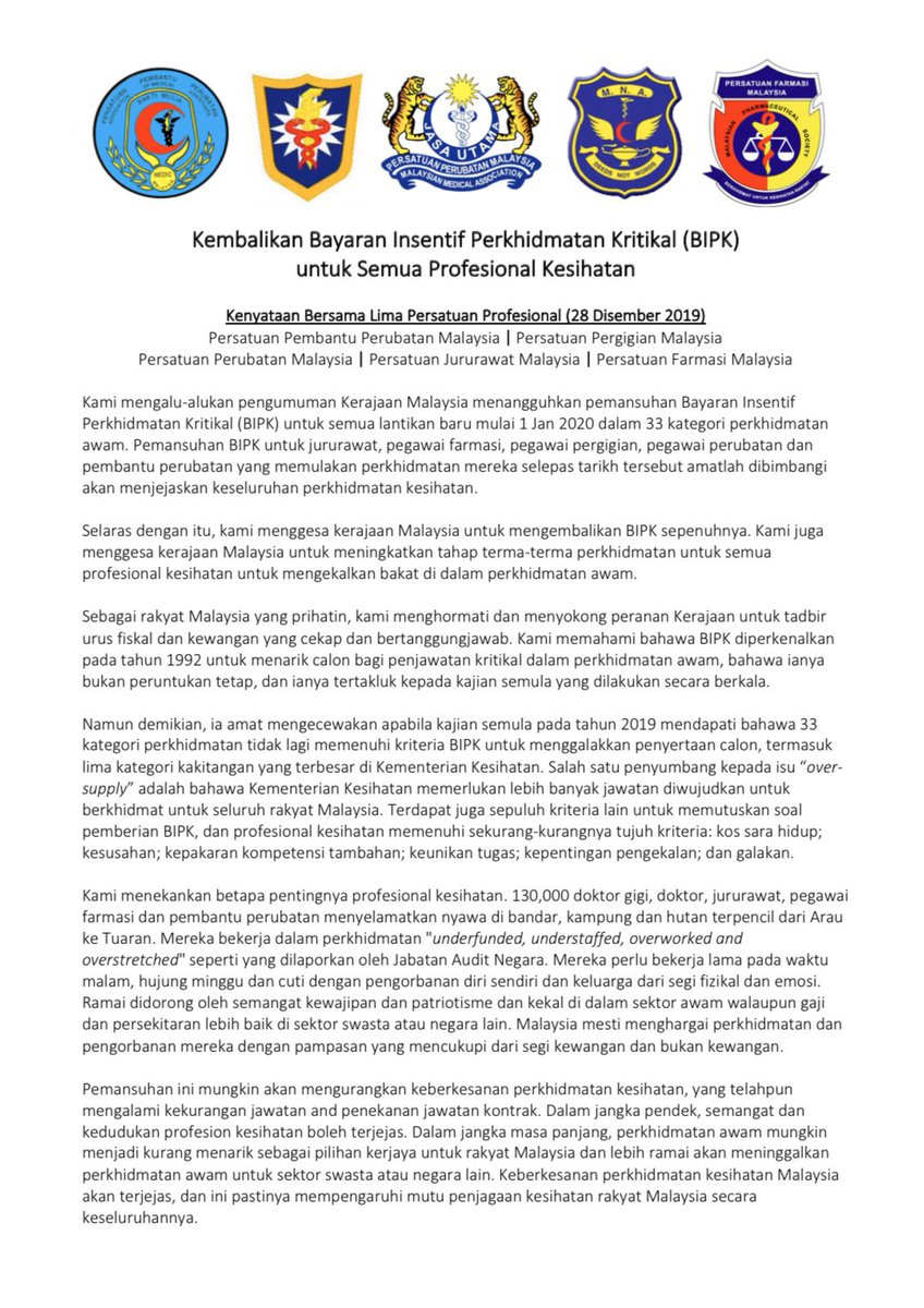 Malaysianmedicalassociation On Twitter Kembalikan Bayaran Insentif Perkhidmatan Kritikal Utk Semua Profesional Kesihatan Persatuan Pembantu Perubatan Malaysia Persatuan Pergigian Malaysia Persatuan Perubatan Malaysia Persatuan Jururawat