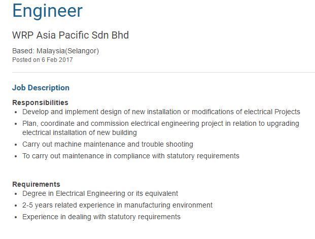 Oil Gas Vacancies Mechanical Electrical Technicians Wrp Asia Pacific Sdn Bhd Selangor